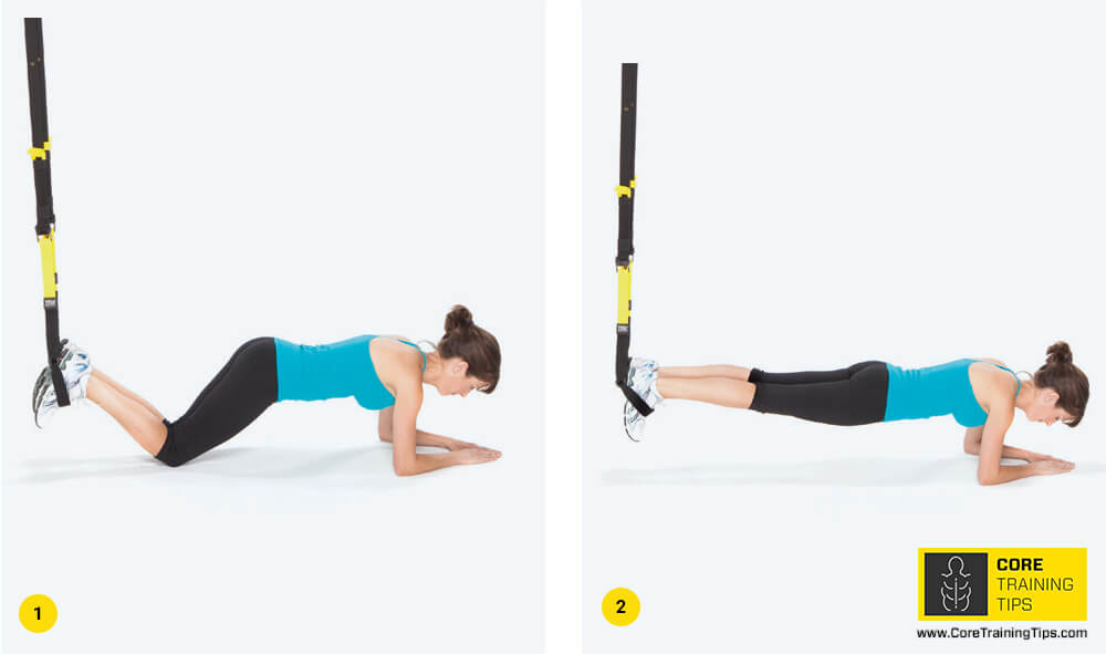 Setup: Straps mid-calf; feet in foot cradles; forearms on floor shoulder-width.