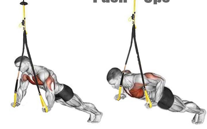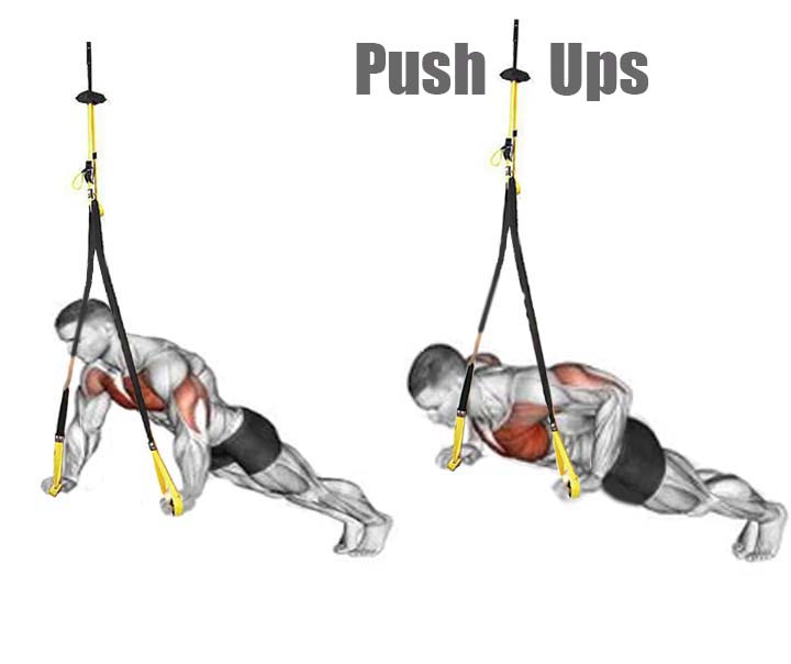How-to: Here’s how you pump up the plain ol’ push-up. Hook your toes through the TRX stirrups so the tops of your feet face the floor. Lift your body up so your weight rests on the palms of your hands.